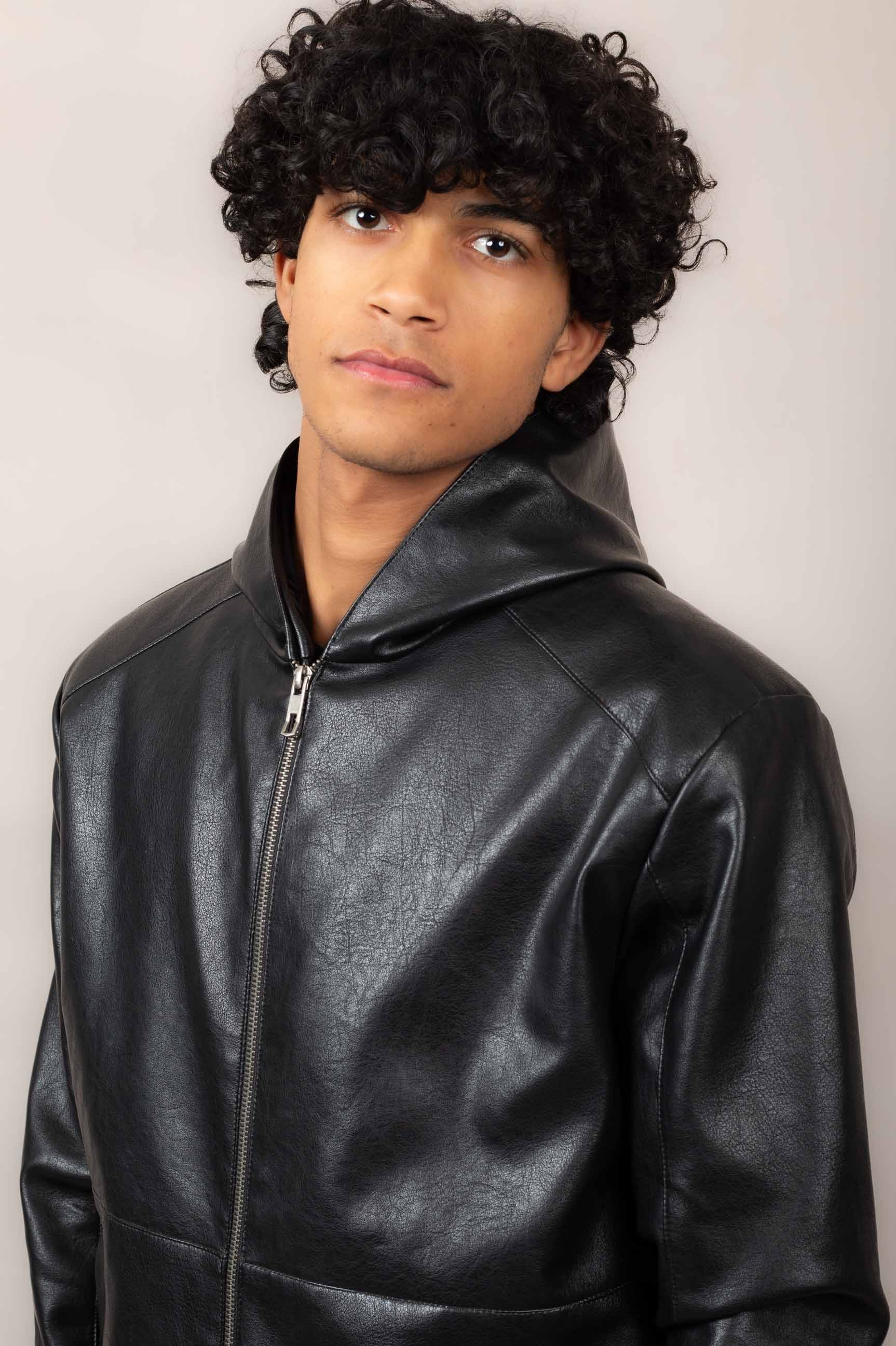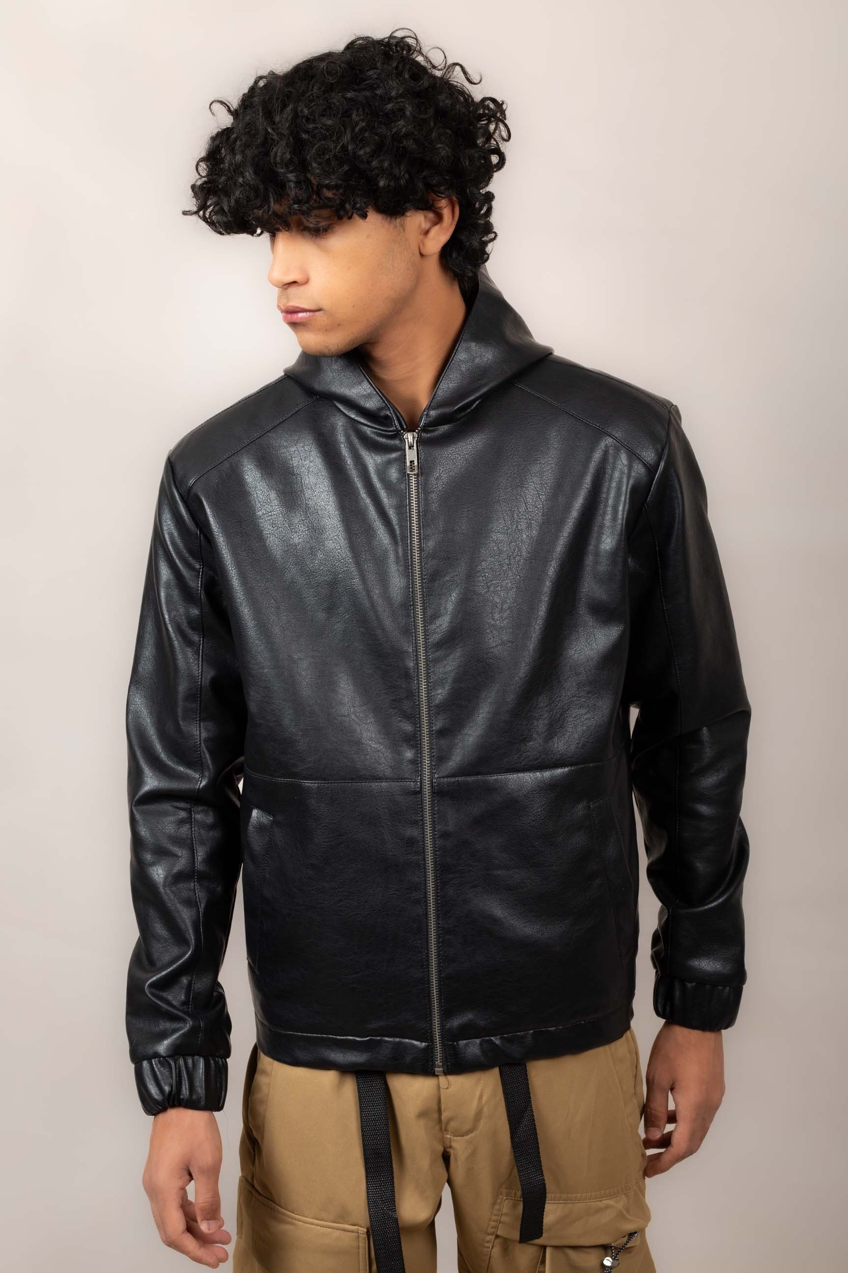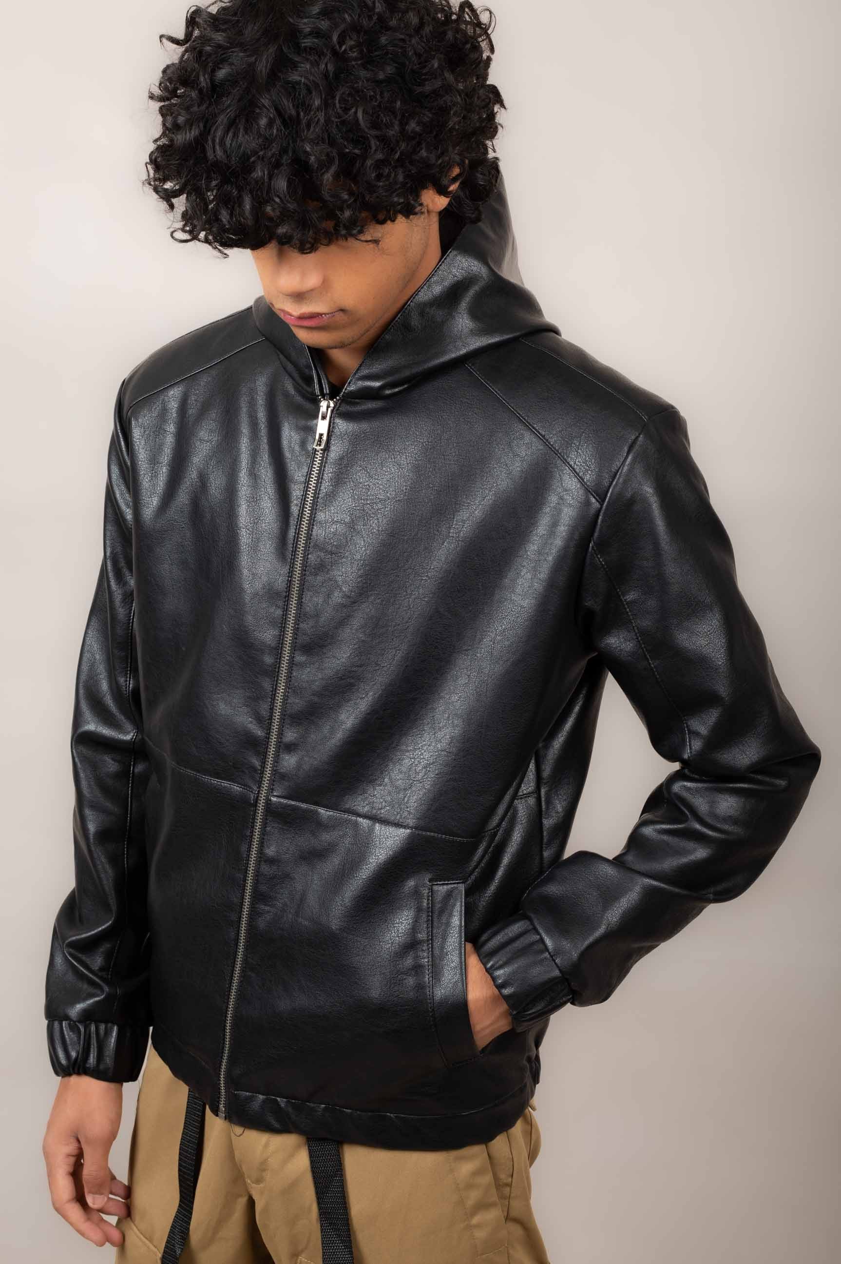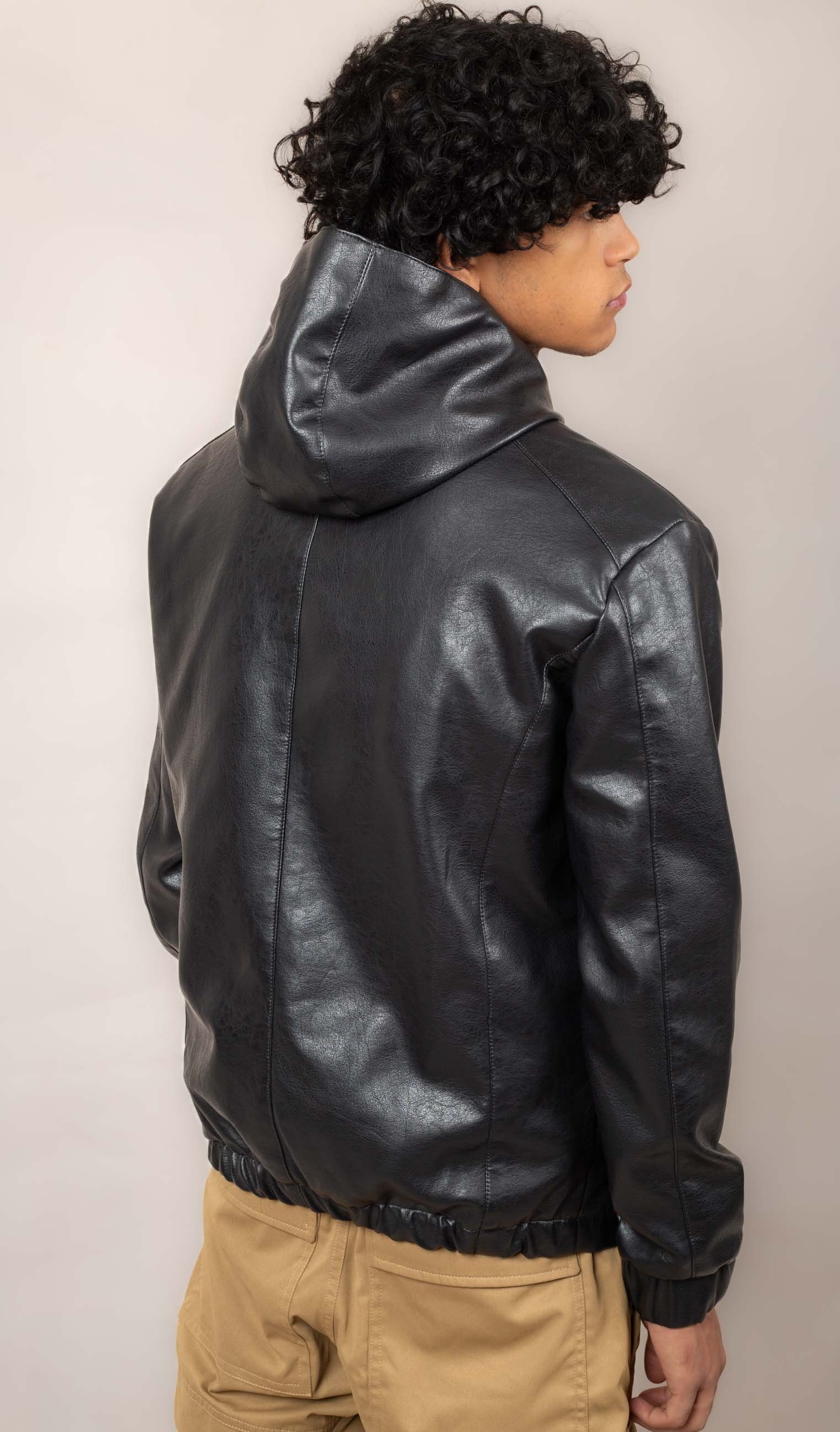 Casual hooded leather jacket