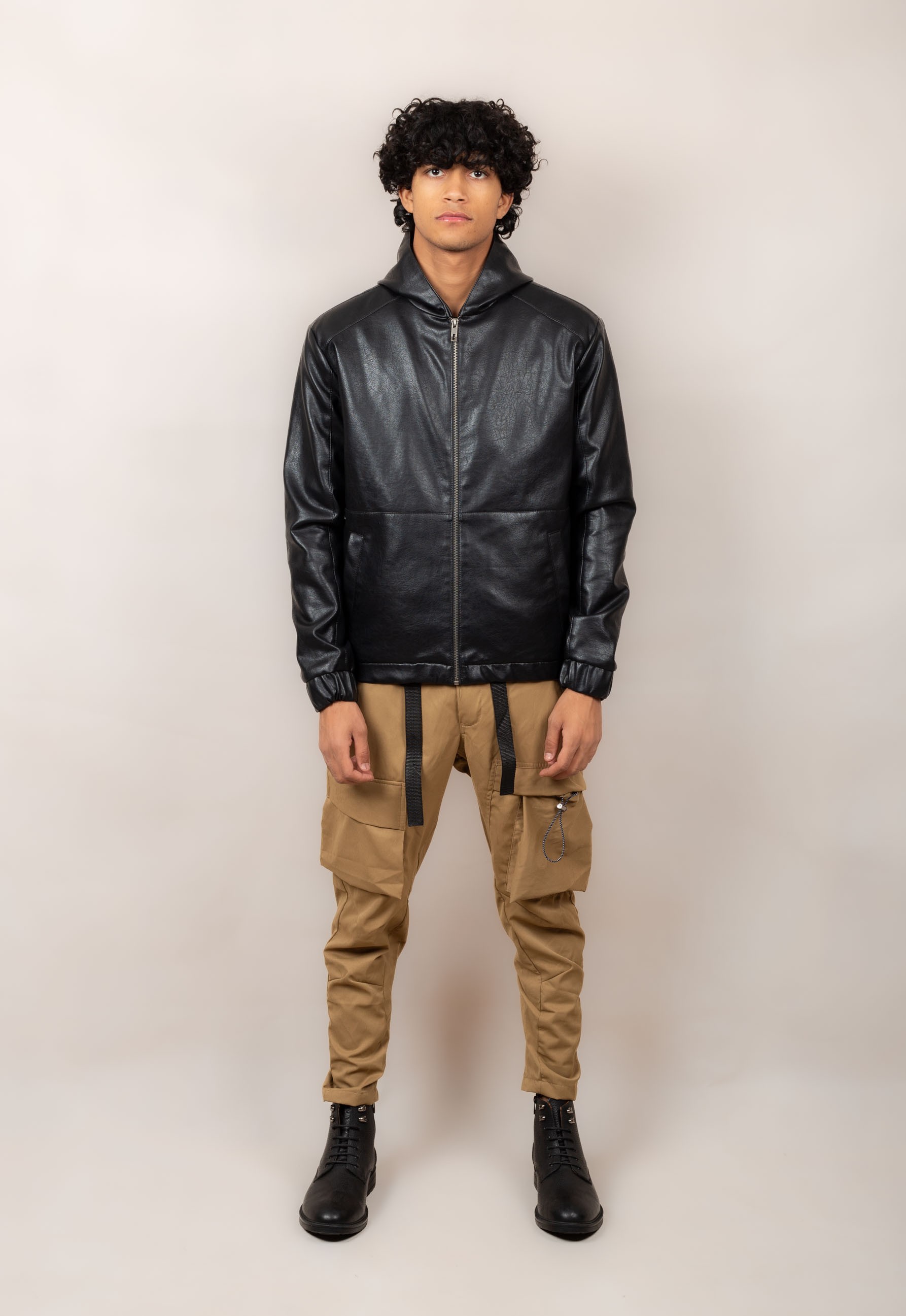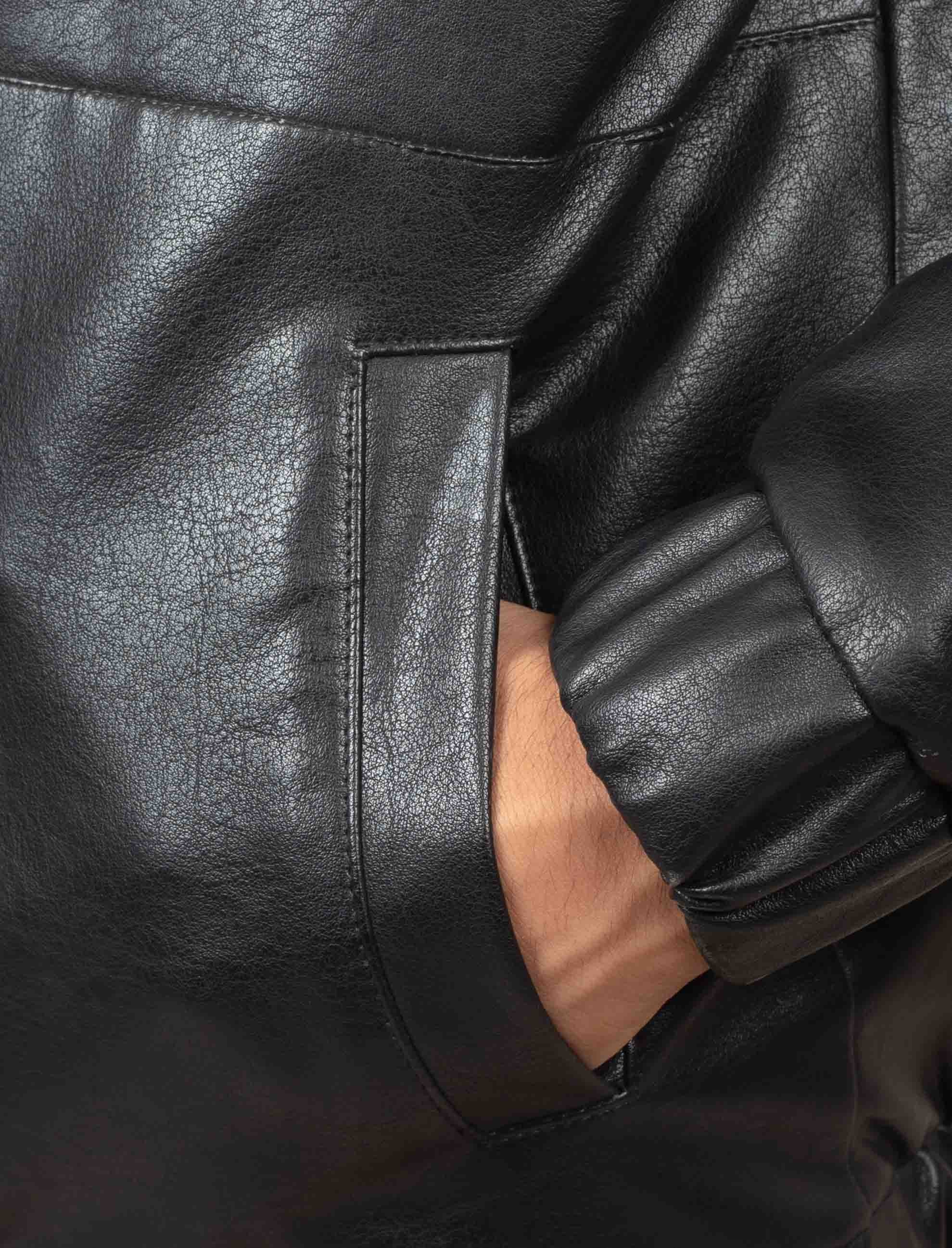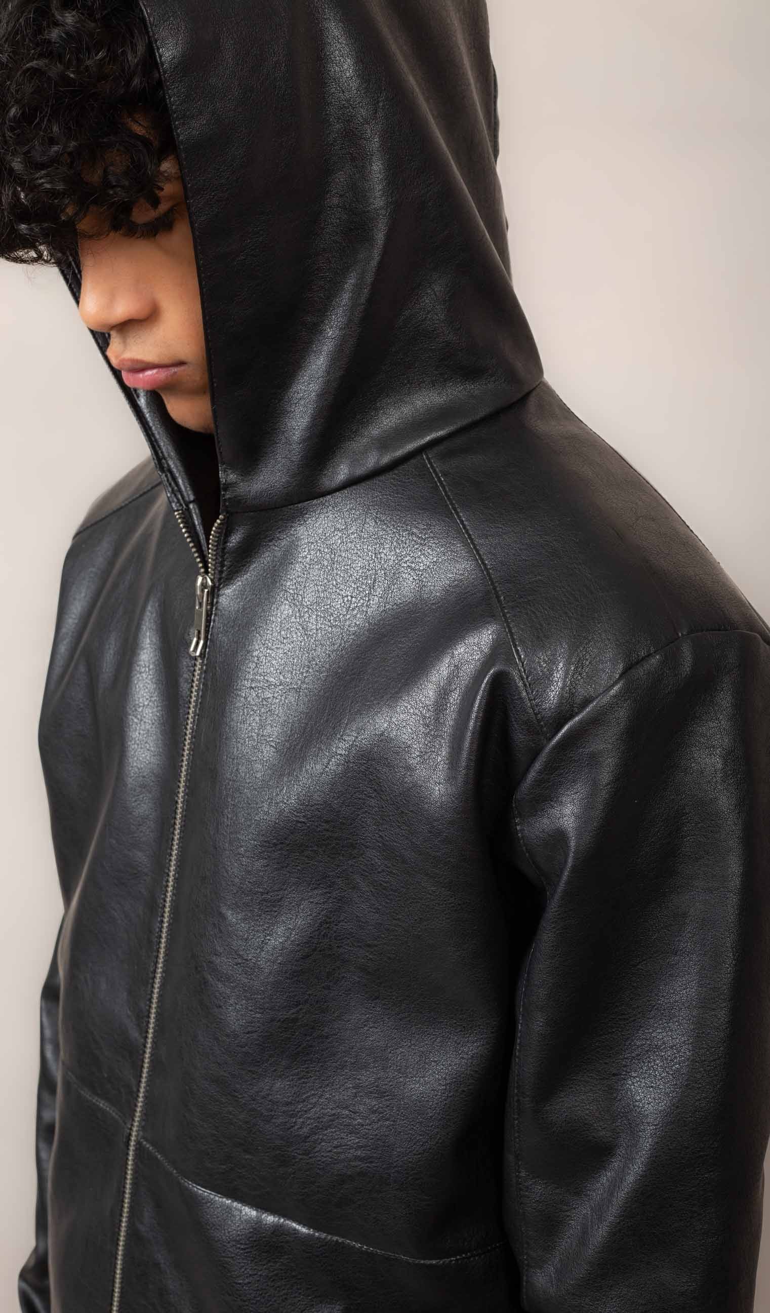 Casual hooded leather jacket